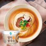 Fideos con una gran textura masticable que aumentará tu experiencia de degustación. La sopa es a base de anchoas/mariscos con todos los sabores salados y un toque picante. Los fideos están hechos con arroz 100% coreano y polvo de hoja de guayaba. Utilizamos polvo de hoja de guayaba cultivada orgánica y los fideos se hacen sin freír, no tienen grasas trans, sin conservantes y son bajos en calorías.
